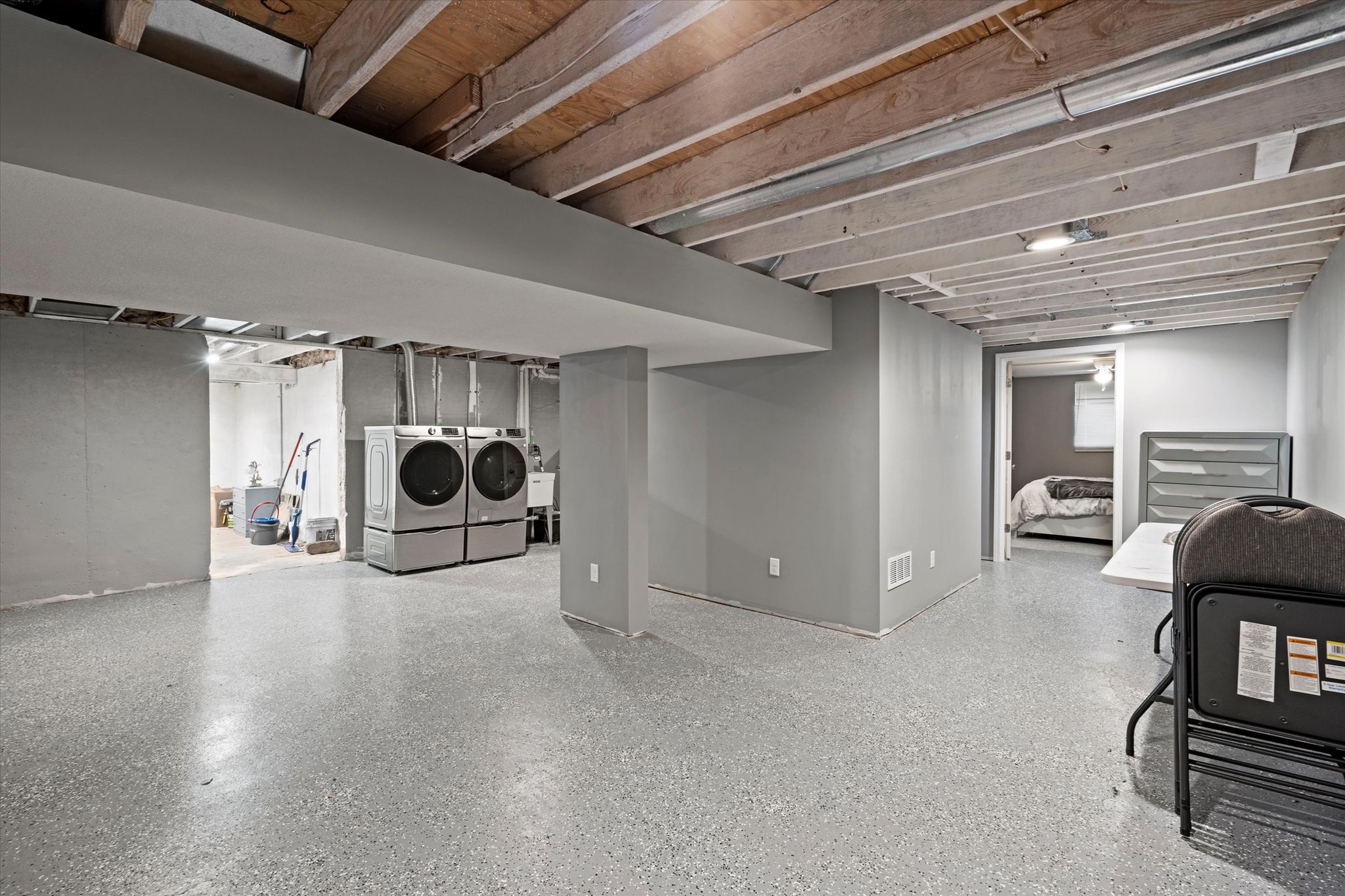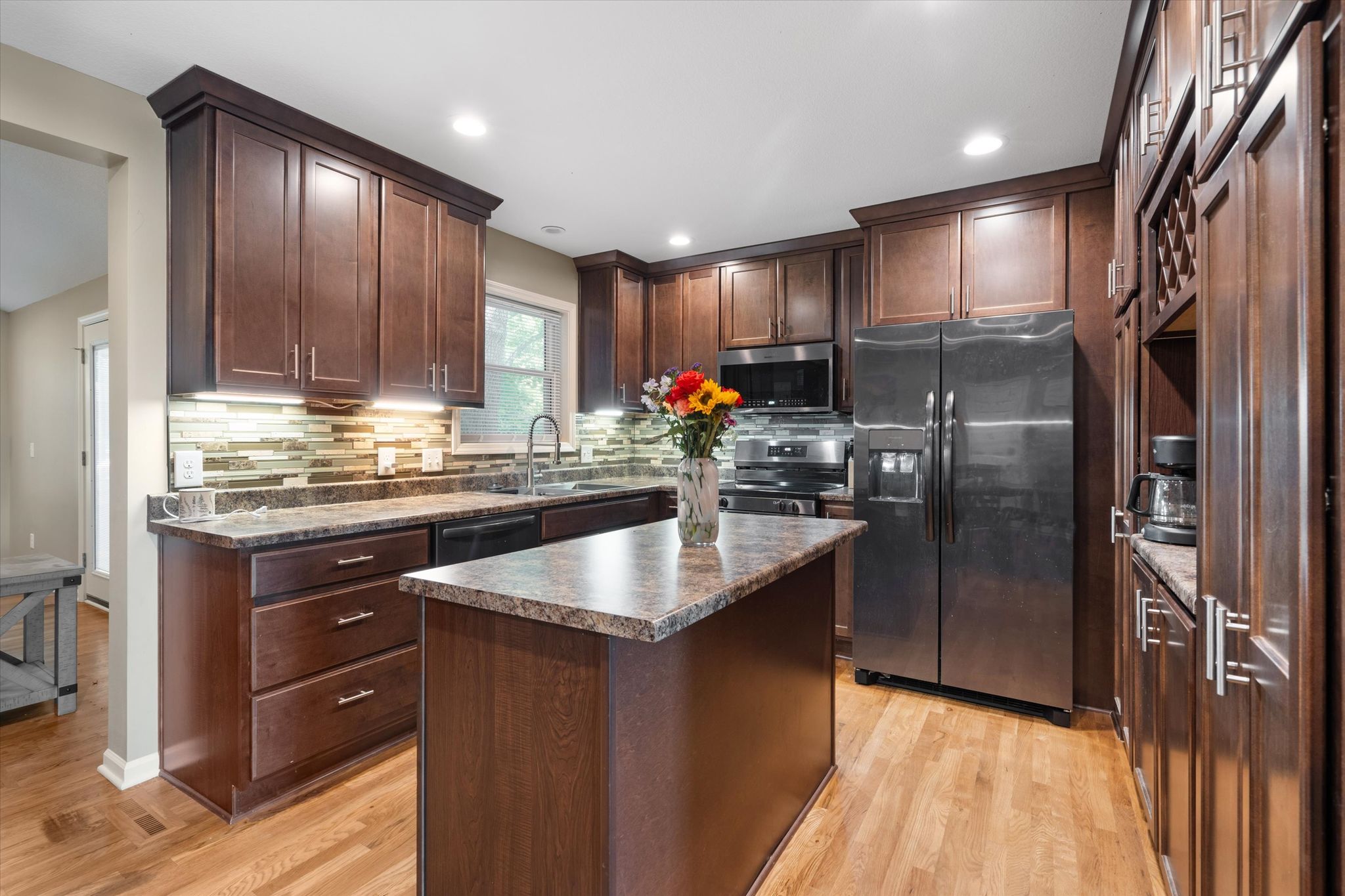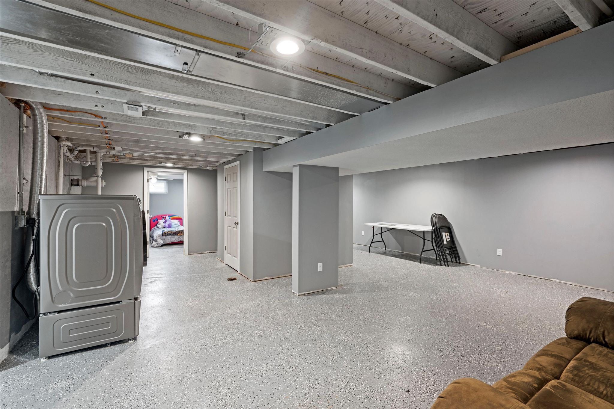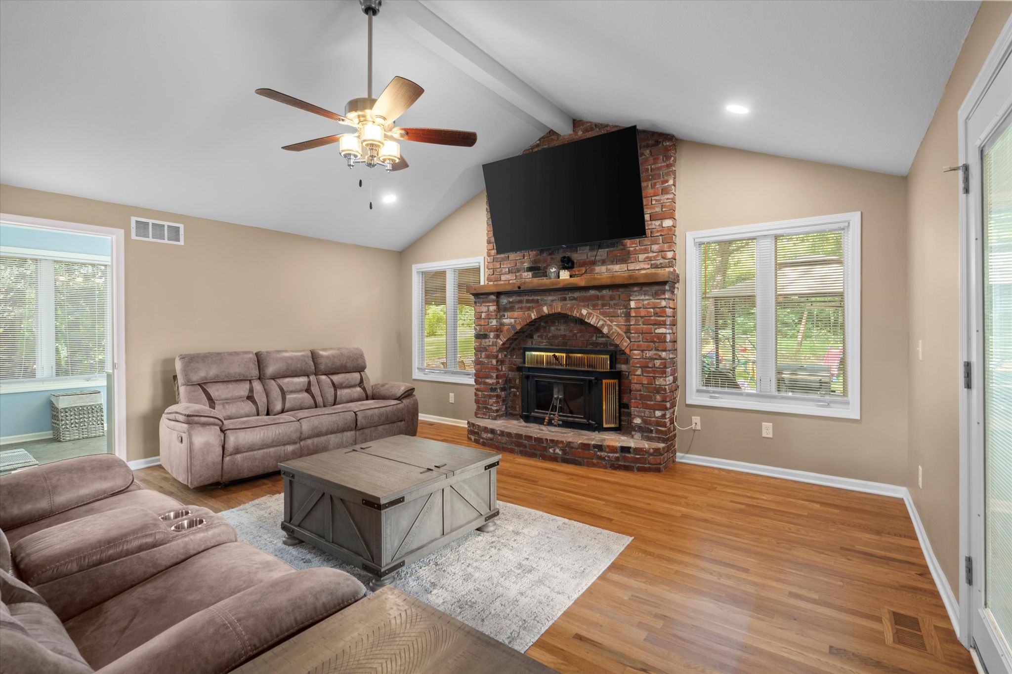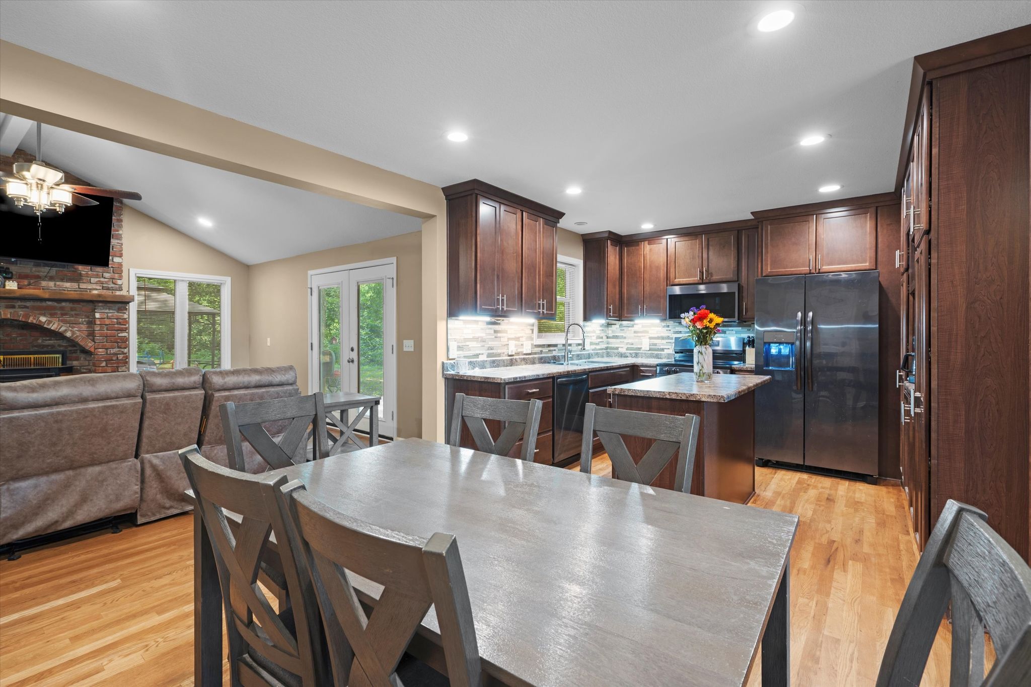 Completely Renovated Ranch on a Half-Acre Treed Lot! This stunning 4-bedroom, 2-bath ranch on a quiet cul-de-sac has been fully remodeled from the studs up in 2024, offering modern updates with timeless style. Enjoy peace of mind with all new plumbing, electrical, windows, and HVAC. Beautiful new hardwood floors flow throughout the main level, complementing the open layout. The brand-new kitchen is a showstopper with abundant storage, island, under-cabinet lighting, stainless steel appliances, and timeless backsplash. Two living areas—each with its own fireplace—include a spacious family room with access to the backyard, perfect for gatherings. The main bathroom feels like a spa retreat with a freestanding tub, large vanity, and an oversized tile shower featuring dual shower heads, built-in seat, and storage niches. The second full bath has also been completely redone, showcasing a tub/shower combo and new vanity. The finished basement expands your living space with a rec room, laundry area, a 4th bedroom, and a non-conforming 5th bedroom—ideal for guests, office, or hobbies. Sitting on a half-acre treed lot, this home offers both privacy and room to enjoy the outdoors.