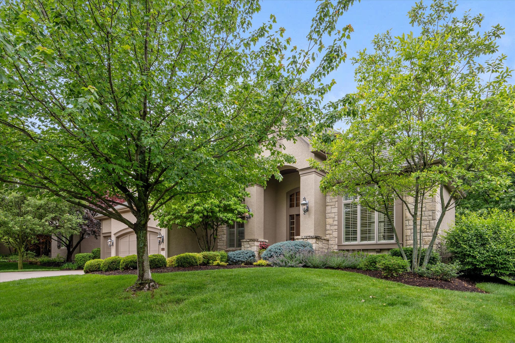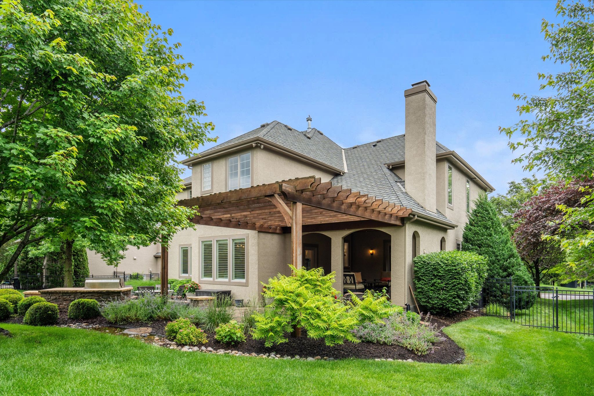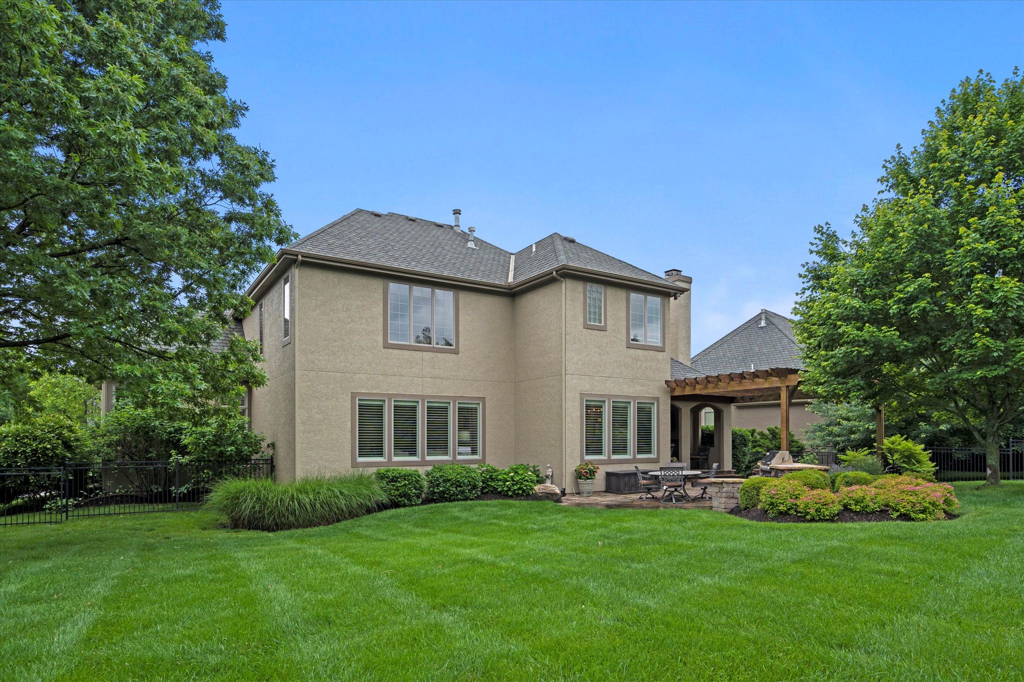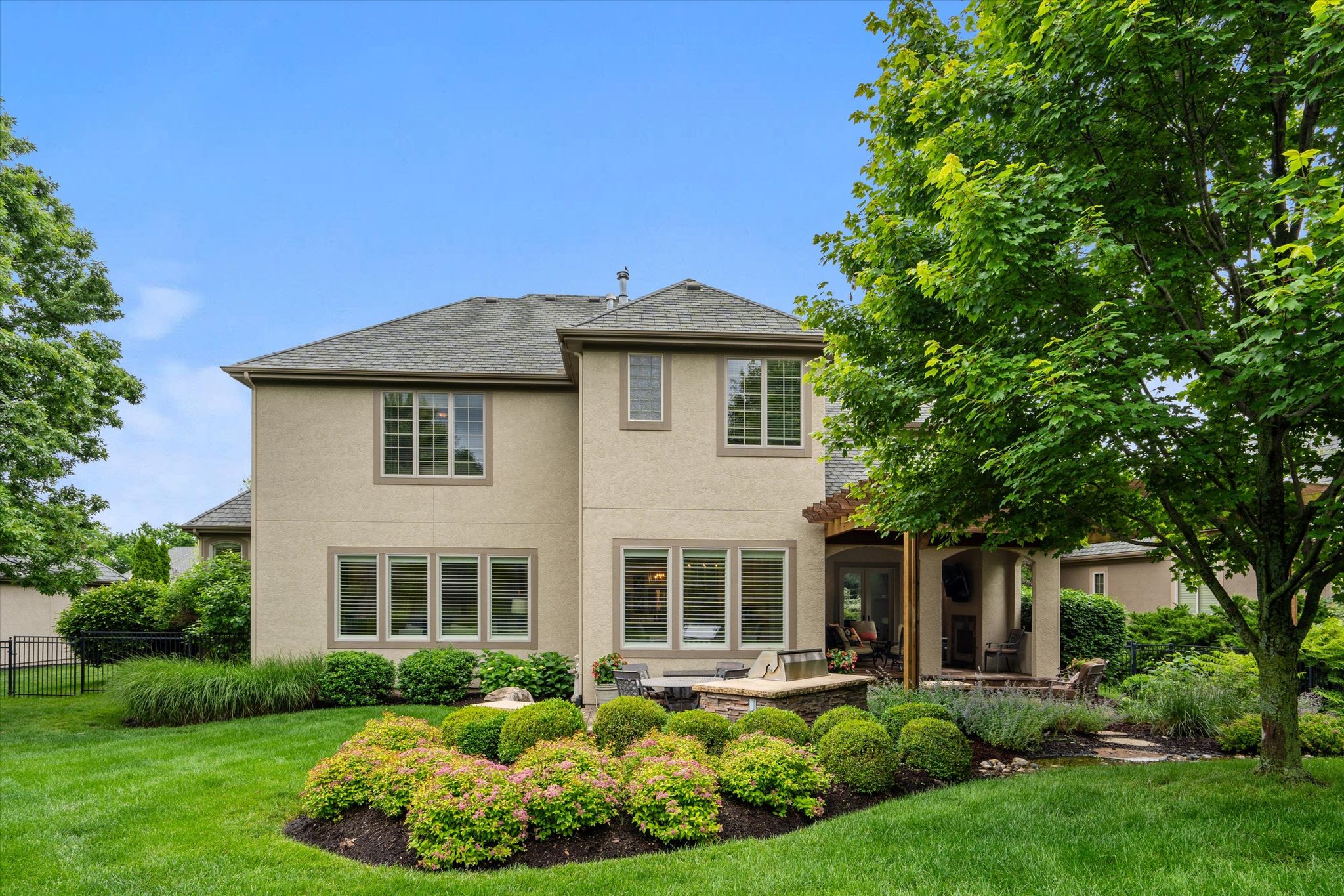 Welcome to this stunning 2-story home nestled in the heart of Mills Farm, one of South Johnson County’s most prestigious and family-friendly neighborhoods. A grand curved staircase and soaring ceilings welcome you as you walk in. Flanking the foyer are a formal living room with 12-foot ceilings and an elegant formal dining room—perfect for hosting gatherings or holiday dinners. The spacious great room is bathed in natural light and features custom built-ins, a beautiful fireplace, and flows seamlessly into the designer kitchen—a true showpiece with a massive island, spectacular Taj Mahal Quartzite countertops, Wolf gas cooktop, double ovens, generous storage, and plenty of seating. Just off the kitchen is a sunny eat-in area and a private main floor office with built-ins and direct access to the lanai. The outdoor living spaces are just as impressive. Enjoy summer barbecues or evening relaxation on the expansive lanai with a brand-new cedar ceiling and outdoor fireplace, plus a patio with built in grill area & a pergola that looks out to the large, flat, and private backyard—perfect for play or entertaining. Upstairs, you’ll find three spacious guest suites, each with walk-in closets and private en suite bathrooms. The luxurious primary suite is a true oasis with tons of space, a fireplace, and storage. The primary bath includes dual sinks, a vanity, large whirlpool tub, a walk in tile shower, a massive walk-in closet and a built-in coffee/wine station. Additional highlights include recently refinished hardwoods on the main floor, new carpet throughout, the most charming half bath on the main level, and a massive unfinished basement offering endless opportunities. Located in the award-winning Blue Valley School District, with Timber Creek Elementary conveniently within the neighborhood, Mills Farm offers unbeatable community amenities: multiple pools, a waterslide, tennis courts, a beautiful clubhouse, and playgrounds.