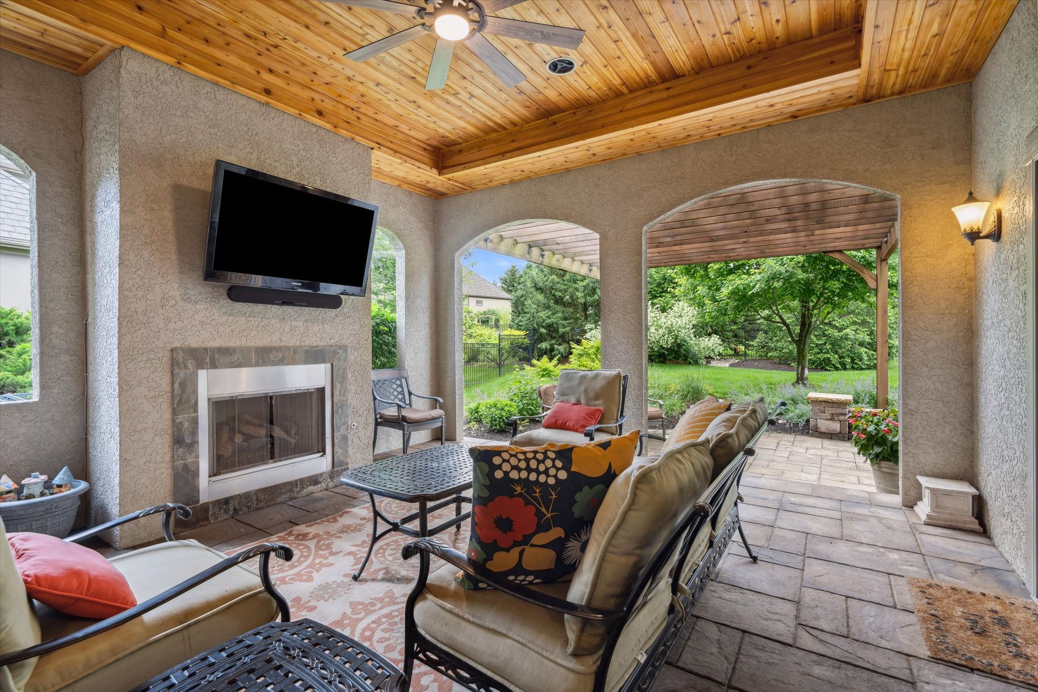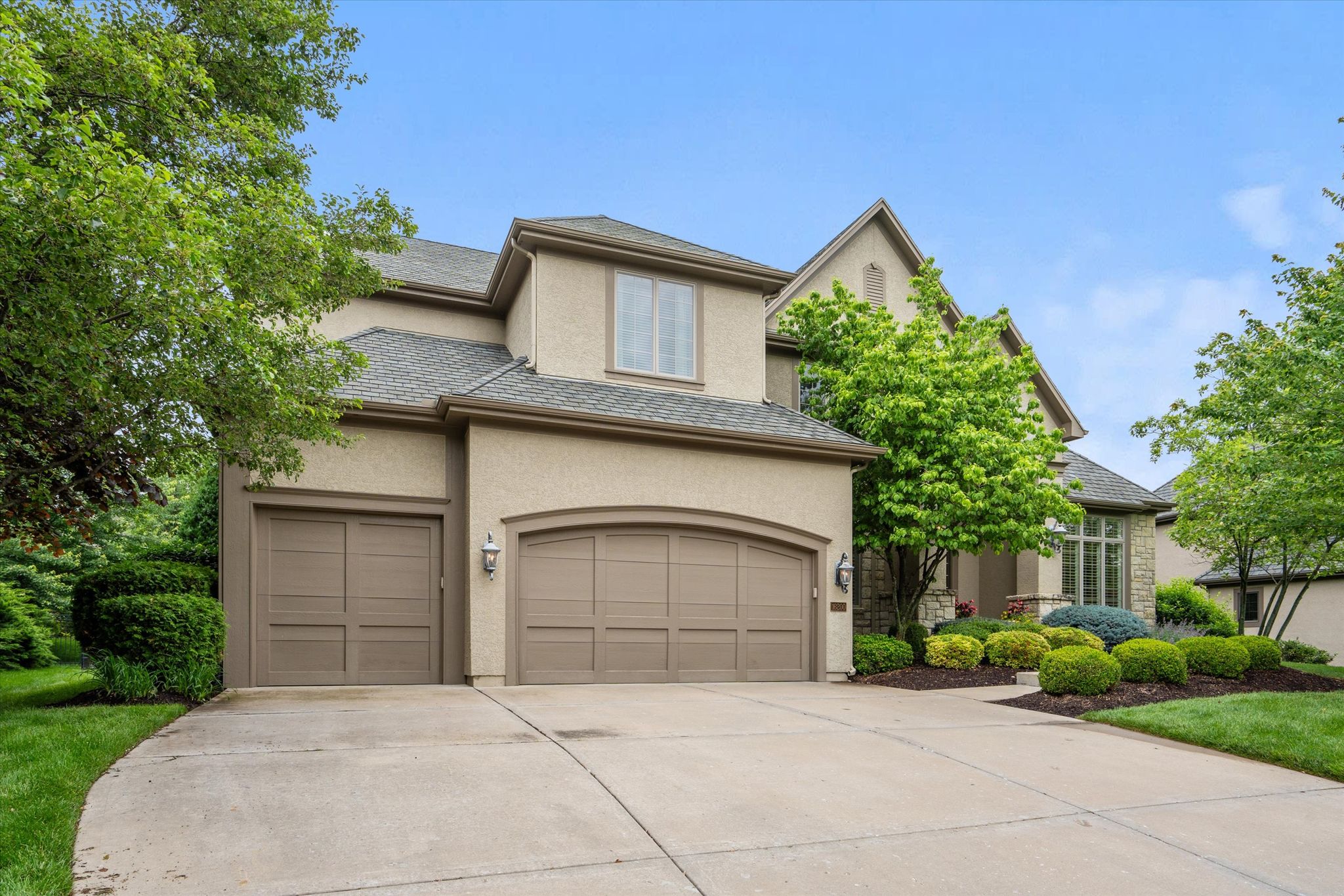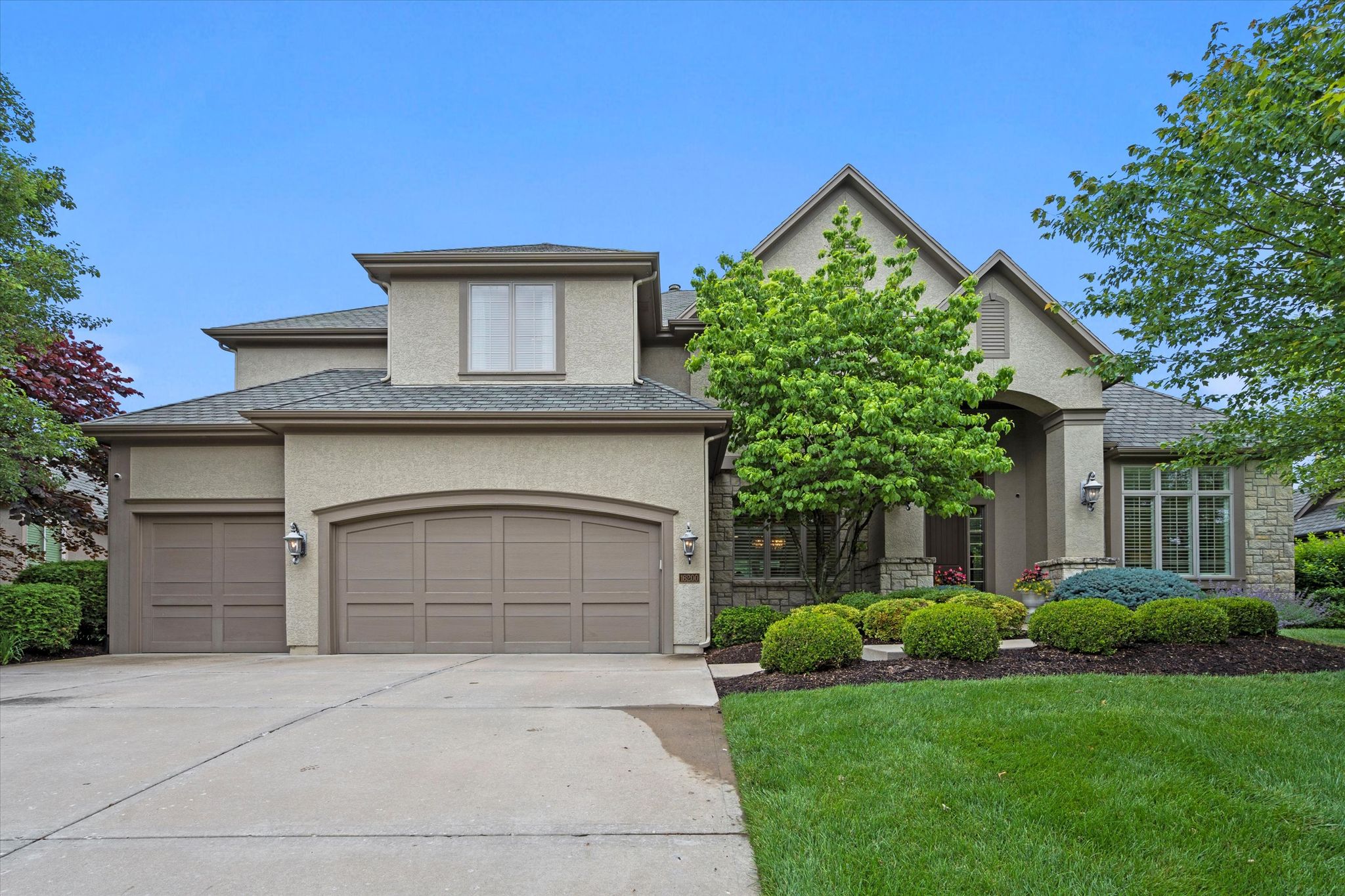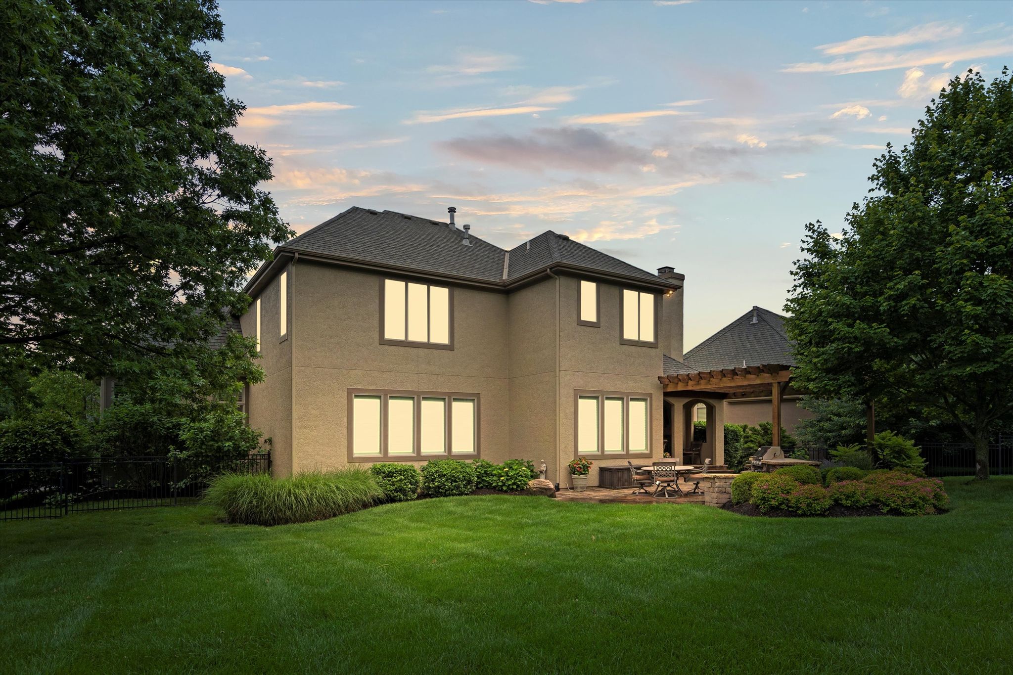Welcome to this stunning 2-story home nestled in the heart of Mills Farm, one of South Johnson County’s most prestigious and family-friendly neighborhoods. A grand curved staircase and soaring ceilings welcome you as you walk in. Flanking the foyer are a formal living room with 12-foot ceilings and an elegant formal dining room—perfect for hosting gatherings or holiday dinners. The spacious great room is bathed in natural light and features custom built-ins, a beautiful fireplace, and flows seamlessly into the designer kitchen—a true showpiece with a massive island, spectacular Taj Mahal Quartzite countertops, Wolf gas cooktop, double ovens, generous storage, and plenty of seating. Just off the kitchen is a sunny eat-in area and a private main floor office with built-ins and direct access to the lanai. The outdoor living spaces are just as impressive. Enjoy summer barbecues or evening relaxation on the expansive lanai with a brand-new cedar ceiling and outdoor fireplace, plus a patio with built in grill area & a pergola that looks out to the large, flat, and private backyard—perfect for play or entertaining. Upstairs, you’ll find three spacious guest suites, each with walk-in closets and private en suite bathrooms. The luxurious primary suite is a true oasis with tons of space, a fireplace, and storage. The primary bath includes dual sinks, a vanity, large whirlpool tub, a walk in tile shower, a massive walk-in closet and a built-in coffee/wine station. Additional highlights include recently refinished hardwoods on the main floor, new carpet throughout, the most charming half bath on the main level, and a massive unfinished basement offering endless opportunities. Located in the award-winning Blue Valley School District, with Timber Creek Elementary conveniently within the neighborhood, Mills Farm offers unbeatable community amenities: multiple pools, a waterslide, tennis courts, a beautiful clubhouse, and playgrounds.