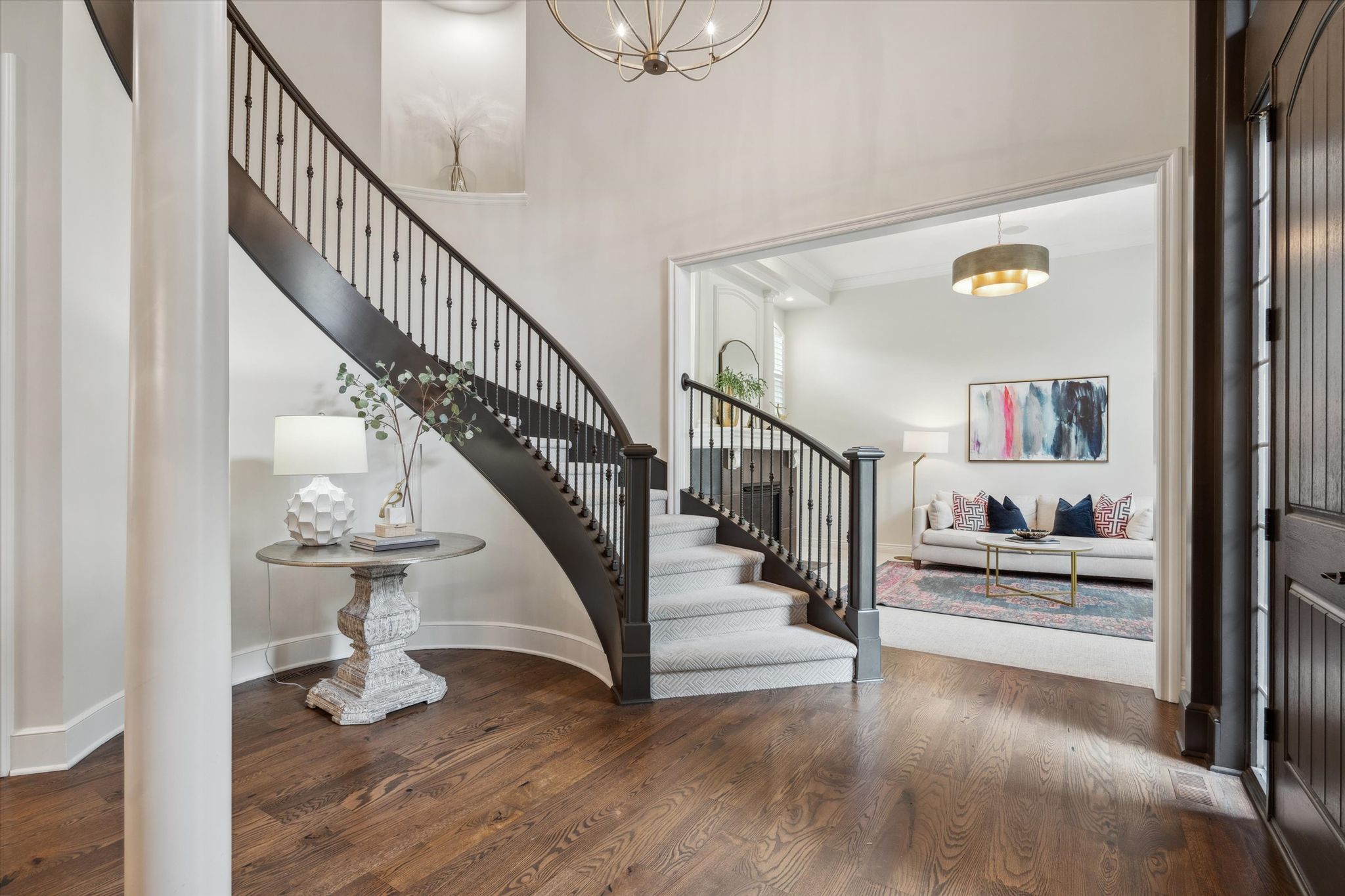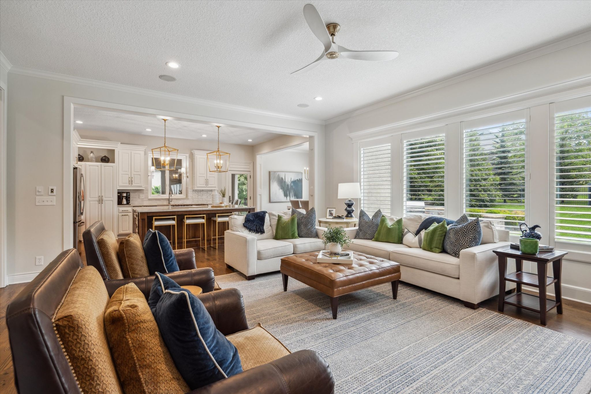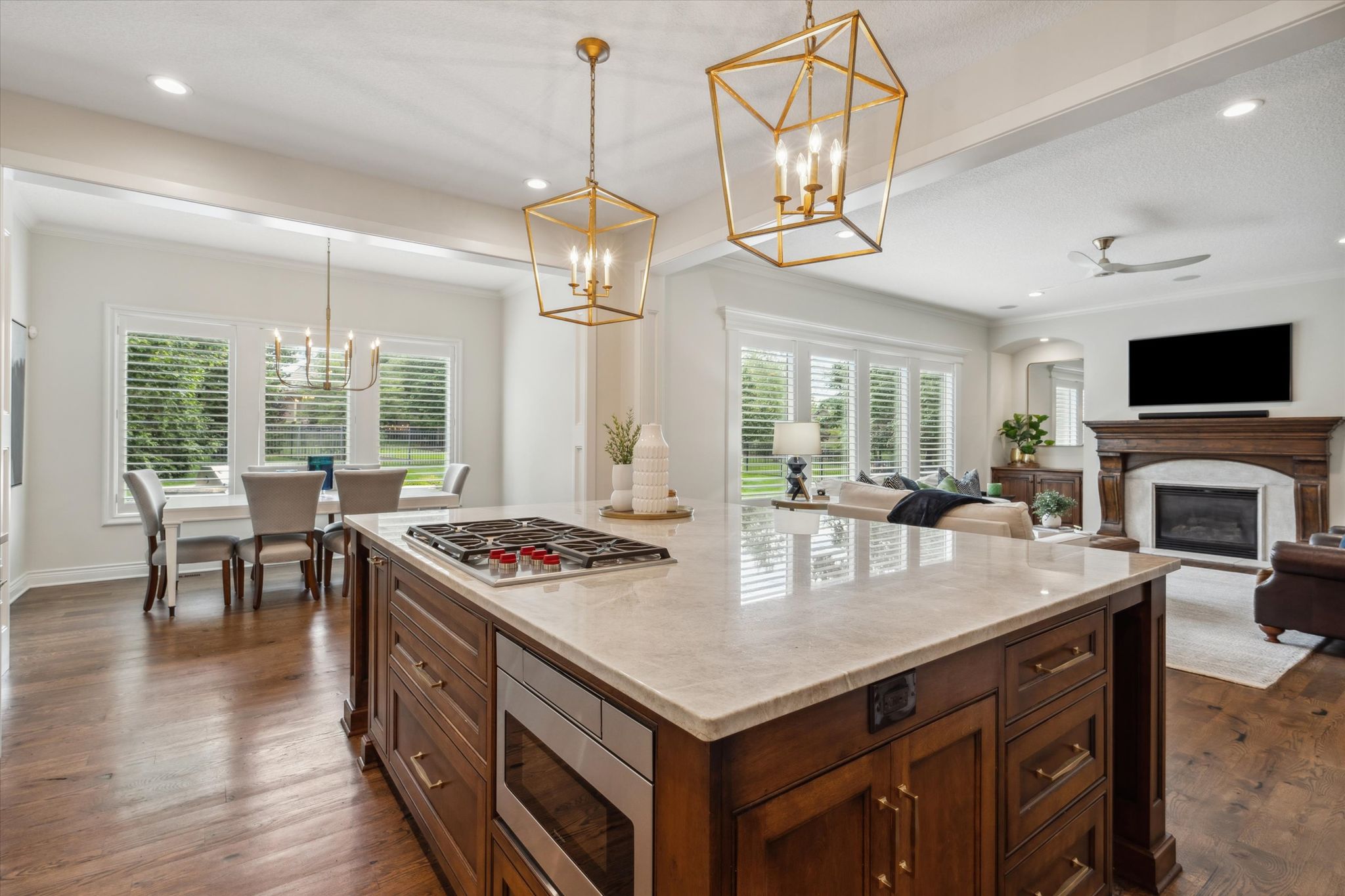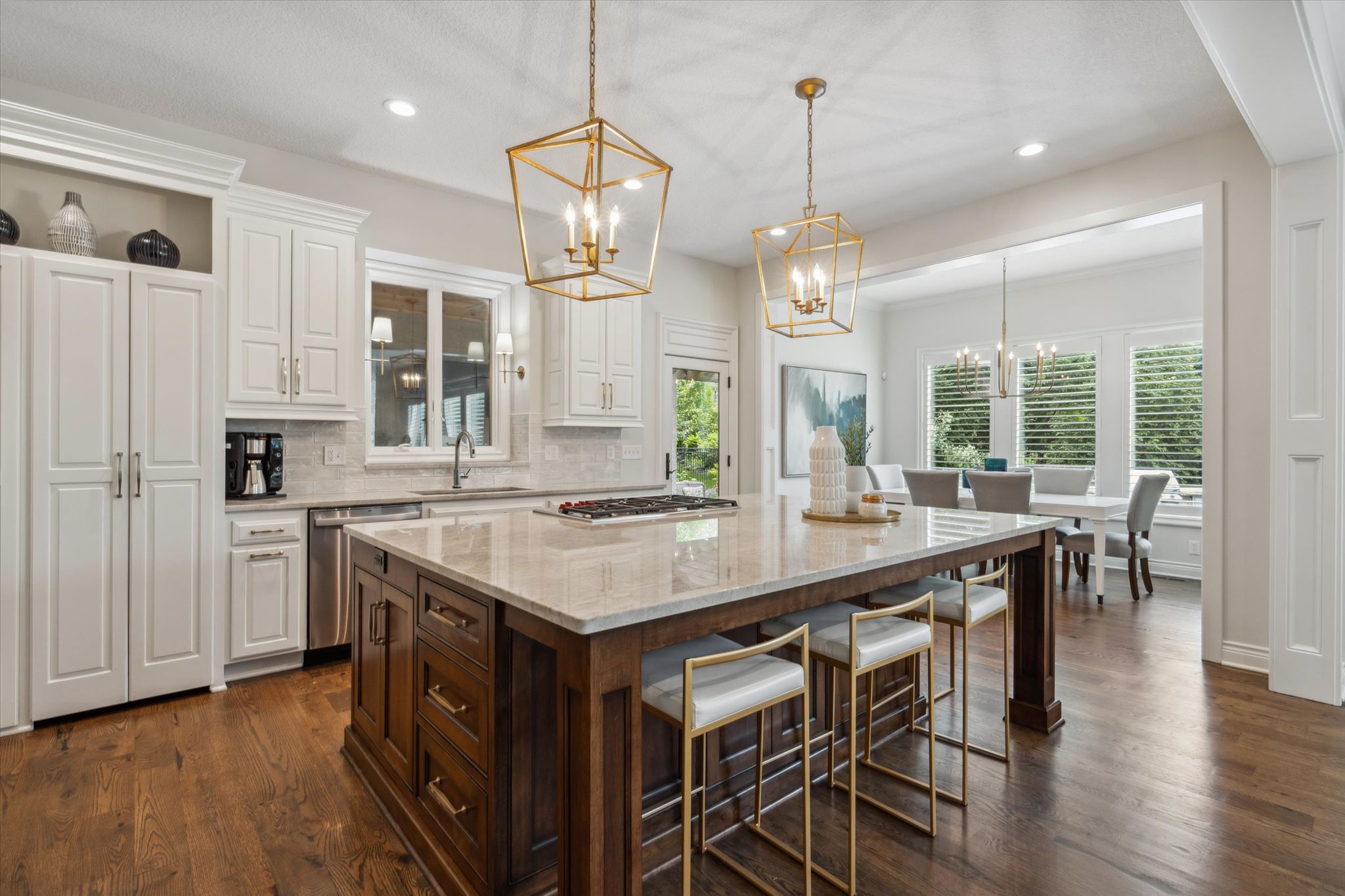 Welcome to this stunning 2-story home nestled in the heart of Mills Farm, one of South Johnson County’s most prestigious and family-friendly neighborhoods. A grand curved staircase and soaring ceilings welcome you as you walk in. Flanking the foyer are a formal living room with 12-foot ceilings and an elegant formal dining room—perfect for hosting gatherings or holiday dinners. The spacious great room is bathed in natural light and features custom built-ins, a beautiful fireplace, and flows seamlessly into the designer kitchen—a true showpiece with a massive island, spectacular Taj Mahal Quartzite countertops, Wolf gas cooktop, double ovens, generous storage, and plenty of seating. Just off the kitchen is a sunny eat-in area and a private main floor office with built-ins and direct access to the lanai. The outdoor living spaces are just as impressive. Enjoy summer barbecues or evening relaxation on the expansive lanai with a brand-new cedar ceiling and outdoor fireplace, plus a patio with built in grill area & a pergola that looks out to the large, flat, and private backyard—perfect for play or entertaining. Upstairs, you’ll find three spacious guest suites, each with walk-in closets and private en suite bathrooms. The luxurious primary suite is a true oasis with tons of space, a fireplace, and storage. The primary bath includes dual sinks, a vanity, large whirlpool tub, a walk in tile shower, a massive walk-in closet and a built-in coffee/wine station. Additional highlights include recently refinished hardwoods on the main floor, new carpet throughout, the most charming half bath on the main level, and a massive unfinished basement offering endless opportunities. Located in the award-winning Blue Valley School District, with Timber Creek Elementary conveniently within the neighborhood, Mills Farm offers unbeatable community amenities: multiple pools, a waterslide, tennis courts, a beautiful clubhouse, and playgrounds.