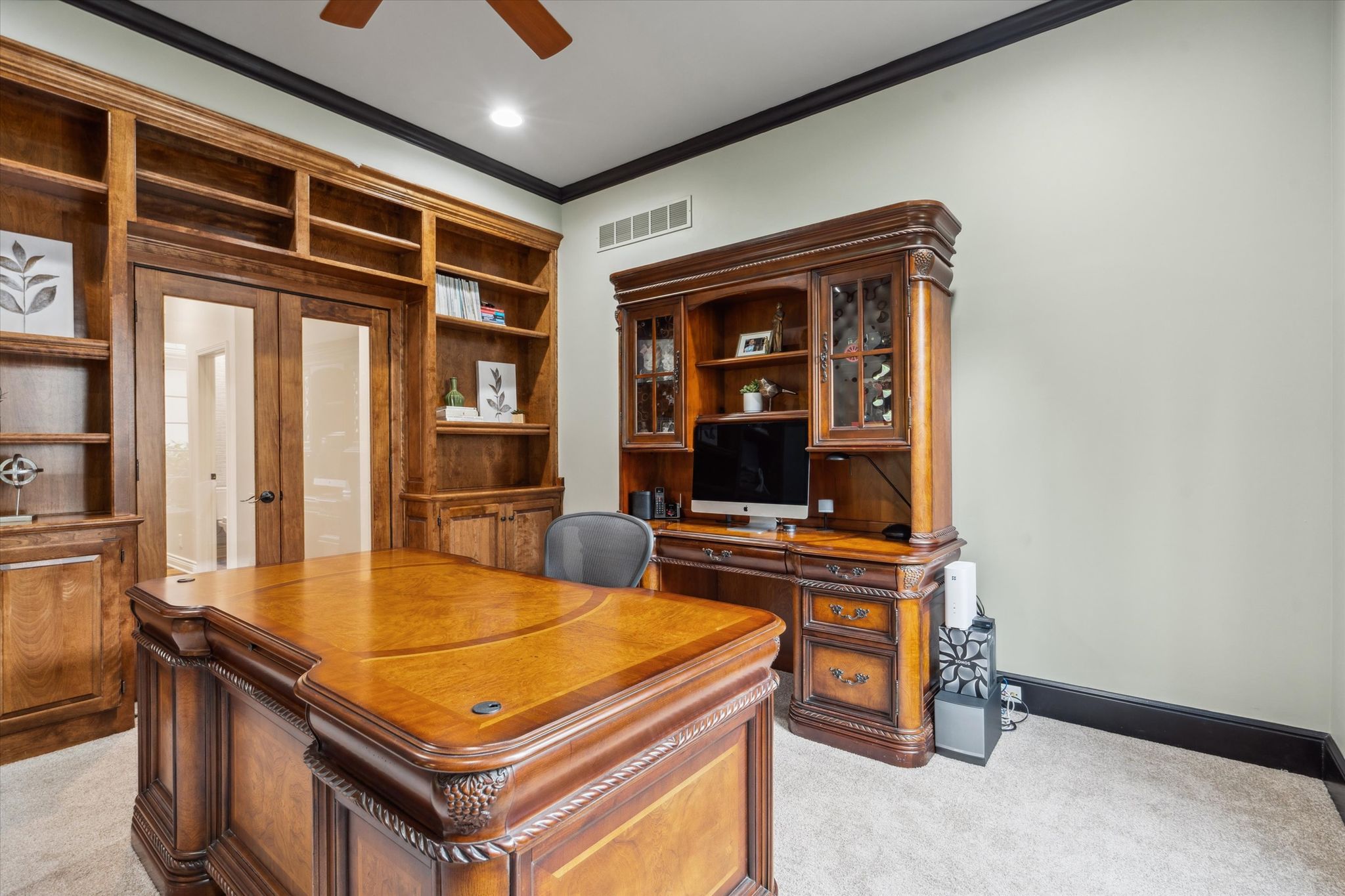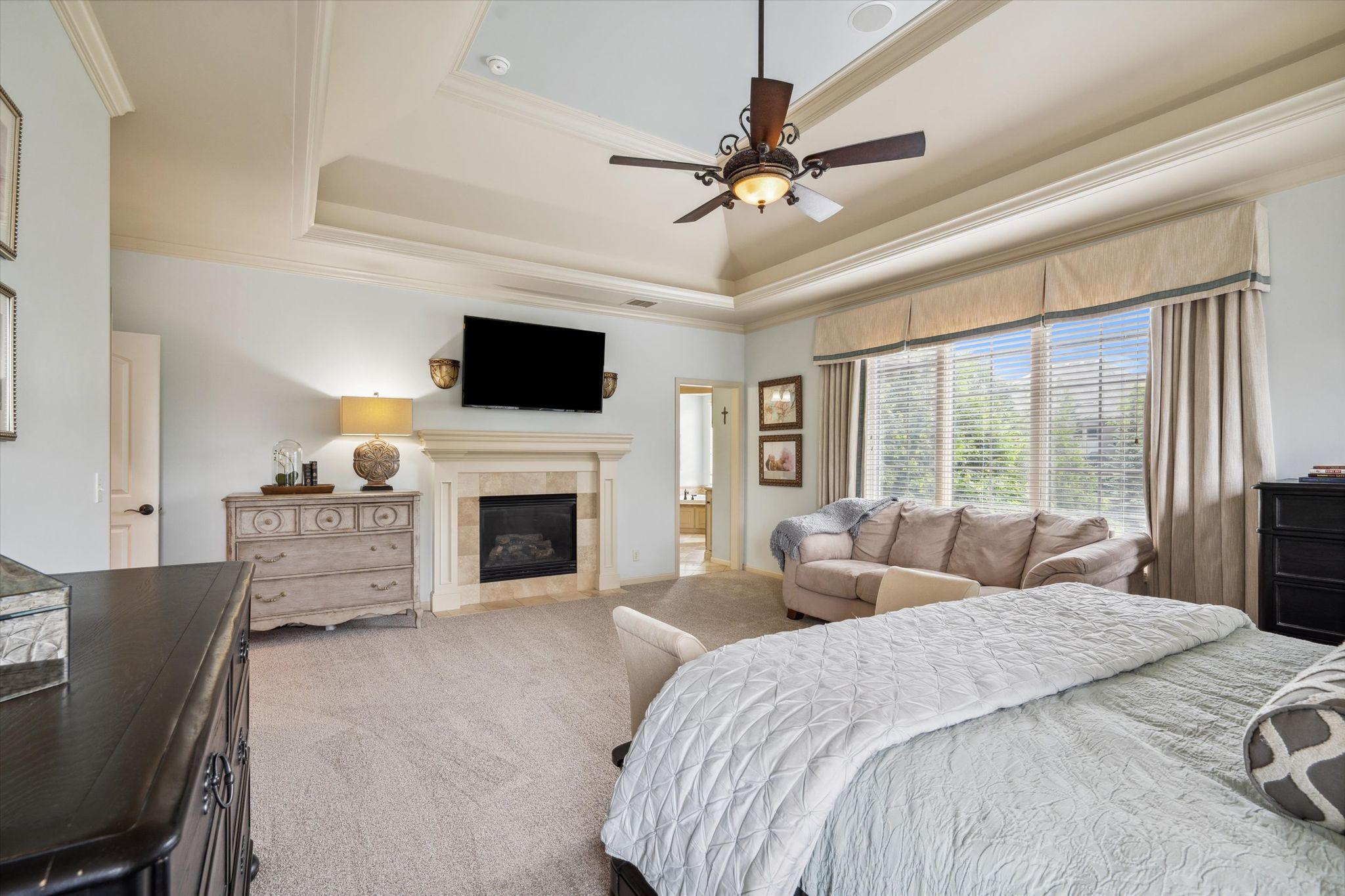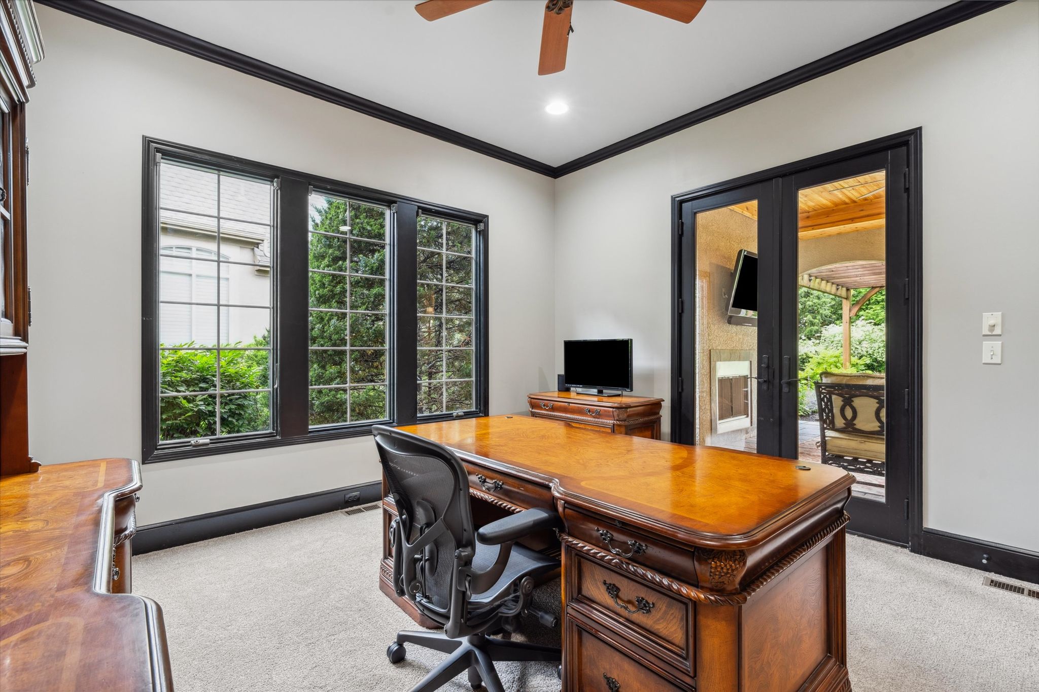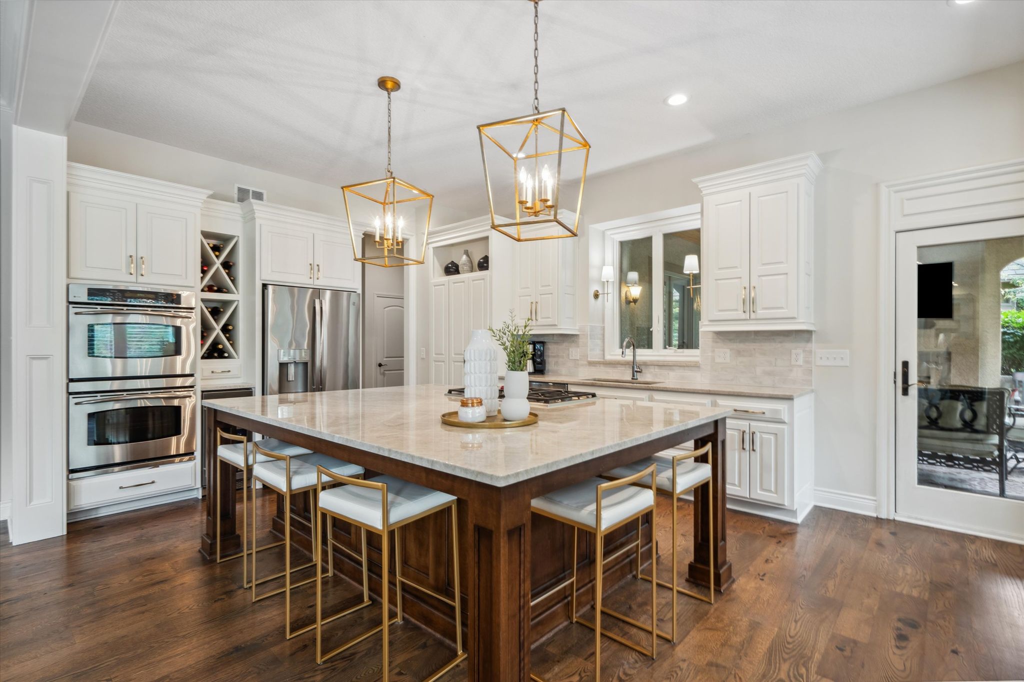 Welcome to this stunning 2-story home nestled in the heart of Mills Farm, one of South Johnson County’s most prestigious and family-friendly neighborhoods. A grand curved staircase and soaring ceilings welcome you as you walk in. Flanking the foyer are a formal living room with 12-foot ceilings and an elegant formal dining room—perfect for hosting gatherings or holiday dinners. The spacious great room is bathed in natural light and features custom built-ins, a beautiful fireplace, and flows seamlessly into the designer kitchen—a true showpiece with a massive island, spectacular Taj Mahal Quartzite countertops, Wolf gas cooktop, double ovens, generous storage, and plenty of seating. Just off the kitchen is a sunny eat-in area and a private main floor office with built-ins and direct access to the lanai. The outdoor living spaces are just as impressive. Enjoy summer barbecues or evening relaxation on the expansive lanai with a brand-new cedar ceiling and outdoor fireplace, plus a patio with built in grill area & a pergola that looks out to the large, flat, and private backyard—perfect for play or entertaining. Upstairs, you’ll find three spacious guest suites, each with walk-in closets and private en suite bathrooms. The luxurious primary suite is a true oasis with tons of space, a fireplace, and storage. The primary bath includes dual sinks, a vanity, large whirlpool tub, a walk in tile shower, a massive walk-in closet and a built-in coffee/wine station. Additional highlights include recently refinished hardwoods on the main floor, new carpet throughout, the most charming half bath on the main level, and a massive unfinished basement offering endless opportunities. Located in the award-winning Blue Valley School District, with Timber Creek Elementary conveniently within the neighborhood, Mills Farm offers unbeatable community amenities: multiple pools, a waterslide, tennis courts, a beautiful clubhouse, and playgrounds.
